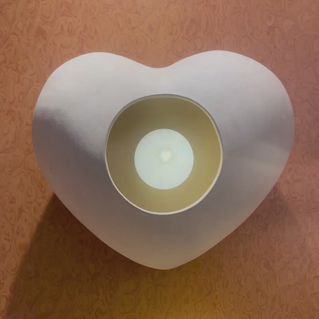 A handcrafted heart-shaped wall light that emits a soft, ambient glow for a warm, inviting atmosphere.