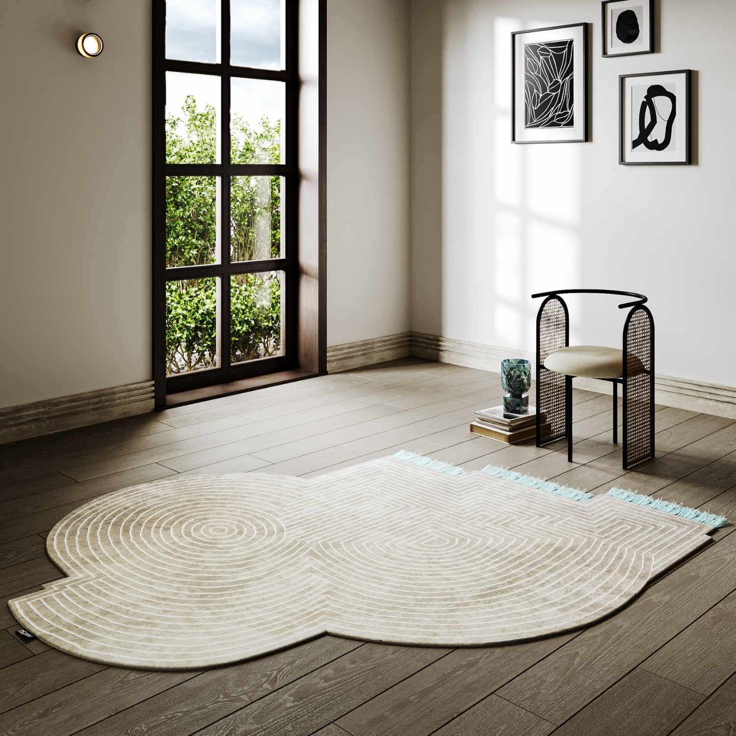 The Maze Rug brings playful geometry and neutral tones together, finished with tassels that spark character.